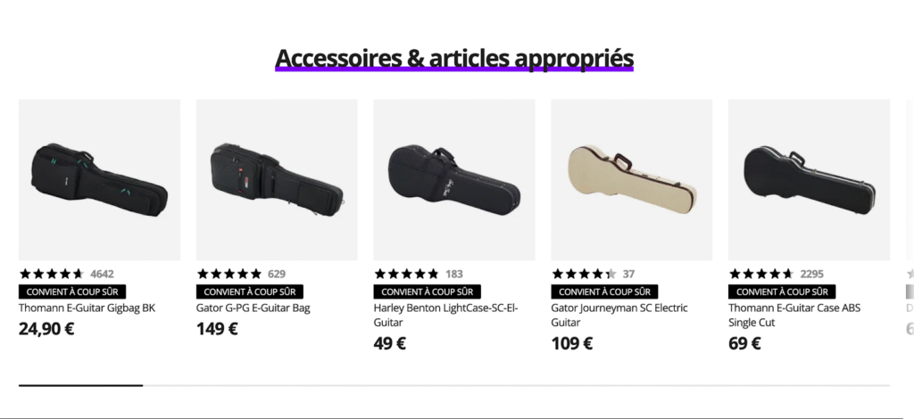 - Sur la fiche produit : intégrez des carrousels « Souvent achetés ensemble » ;