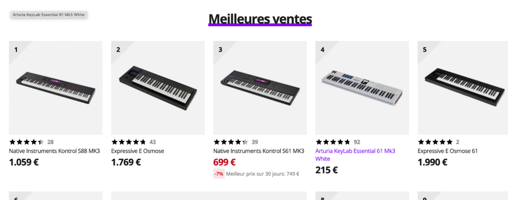 La homepage de votre e-commerce, les onglets “Catégories” et “Recherche” sont les emplacements privilégiés où placer les blocs “Best-seller”, “Populaires” et “Nouveautés”. Autant d’encarts où mettre en lumière vos produits phares.