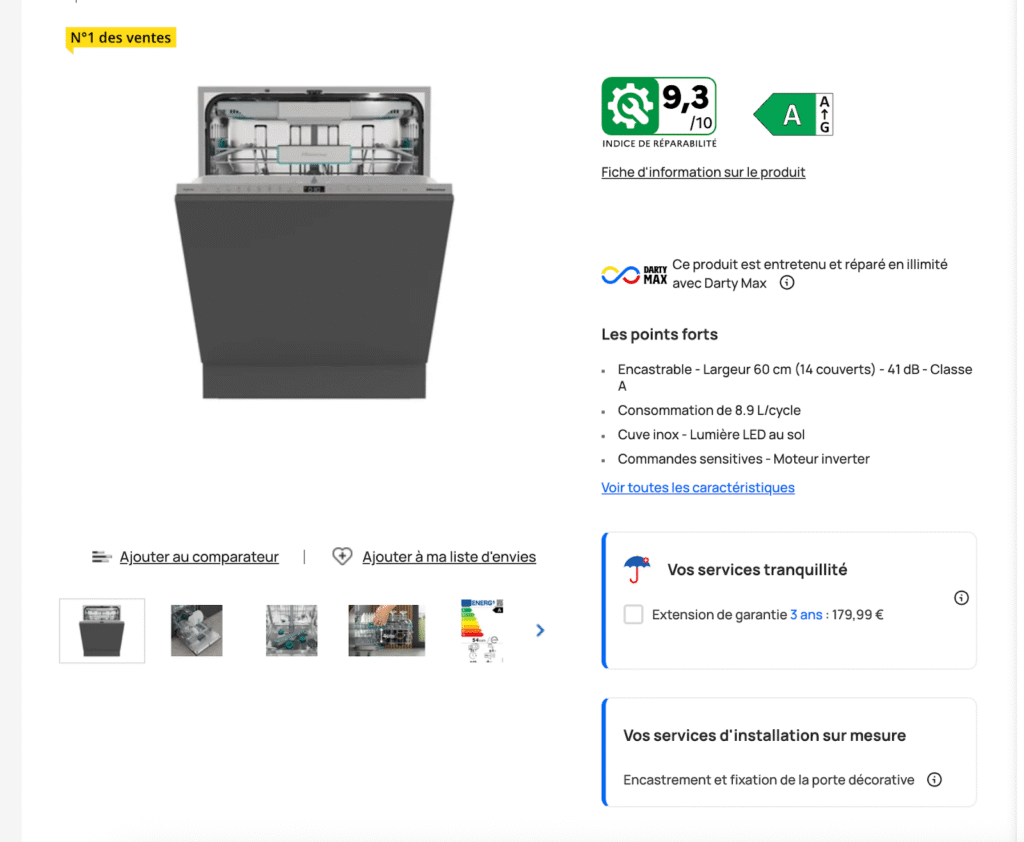 - Des fiches produits améliorées : photo haute qualité, comparatifs ;